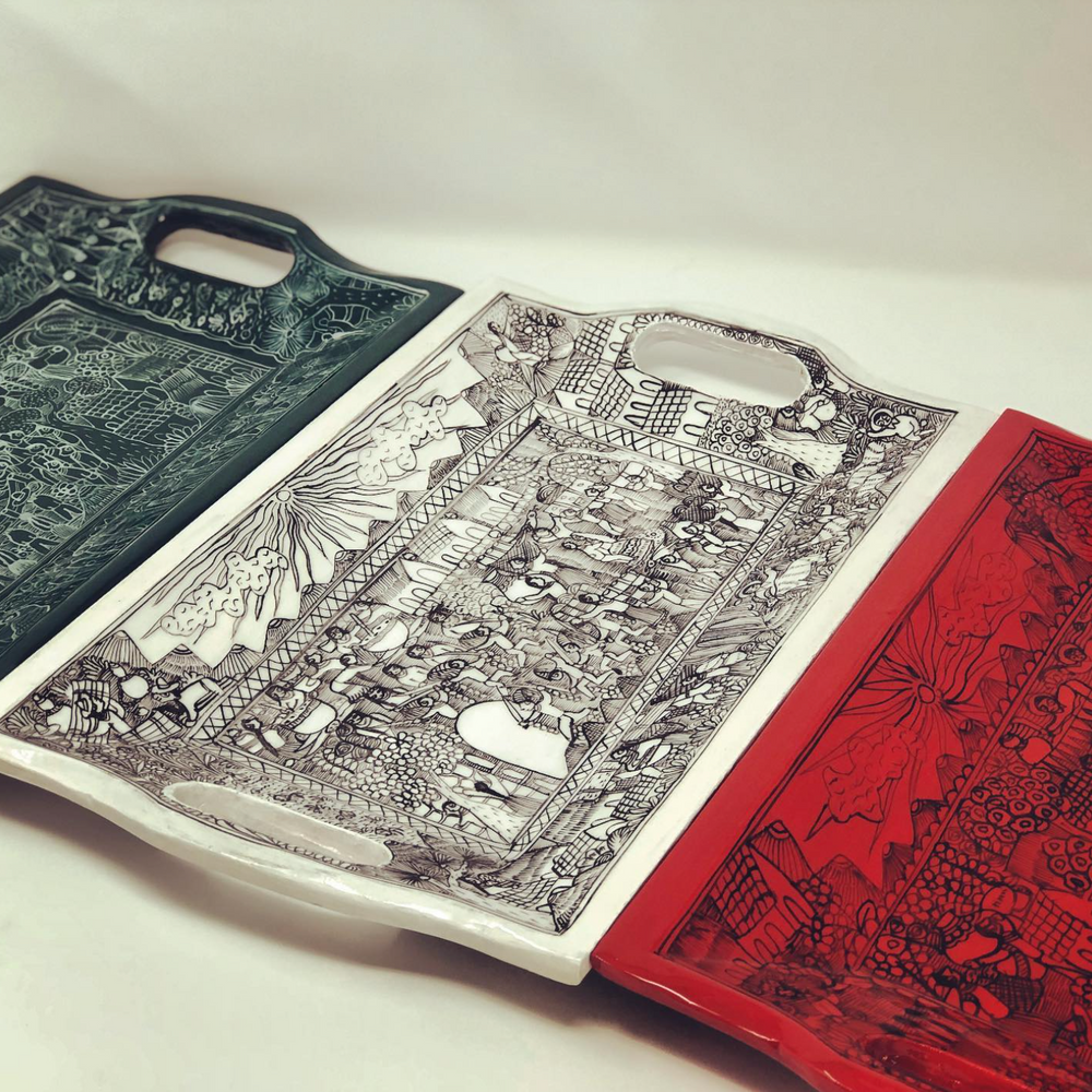 Hand painted Wood Tray Large