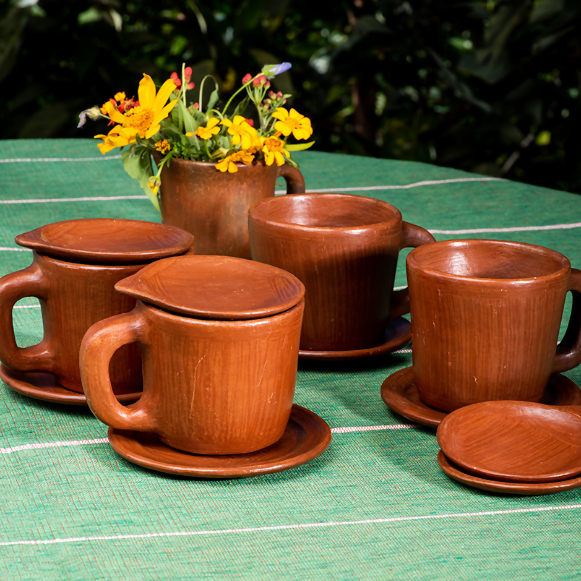 San Marcos Lidded Cup And Saucer Set For Two